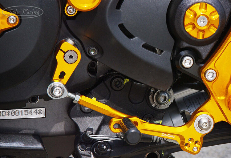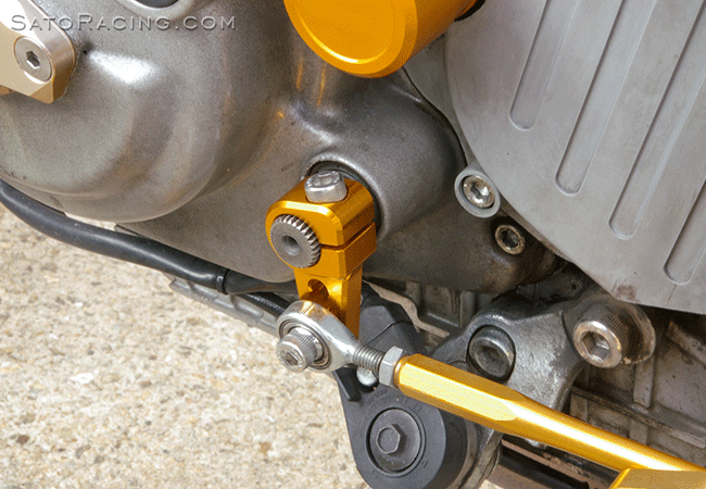 SATO RACING Shift Arm for Ducati models (part# D-CA) is precision CNC-machined from high strength anodized billet aluminum. Works great with Sato Rear Sets! This Shift Arm is reversible, and features 4 mounting positions, so you can adjust the shift stroke to your preference. Use with the stock Ducati rod end and lock nut*. Fits most recent Ducati models. (Not recommended for Panigale series). Choice of Black, Silver or Gold anodized finish.