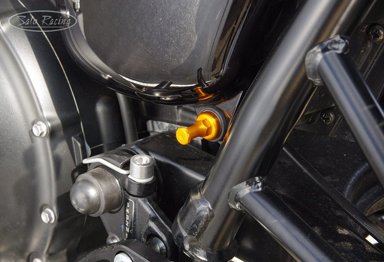 SATO RACING Side Cover Extension Bolts for 2001-15 Triumph Bonneville T100 feature stainless steel studs with anodized billet aluminum extensions with hex-shaped heads, making it easy to access the side cover bolts, without the need to carry bulky wrenches around with you. L/R Set of 2.