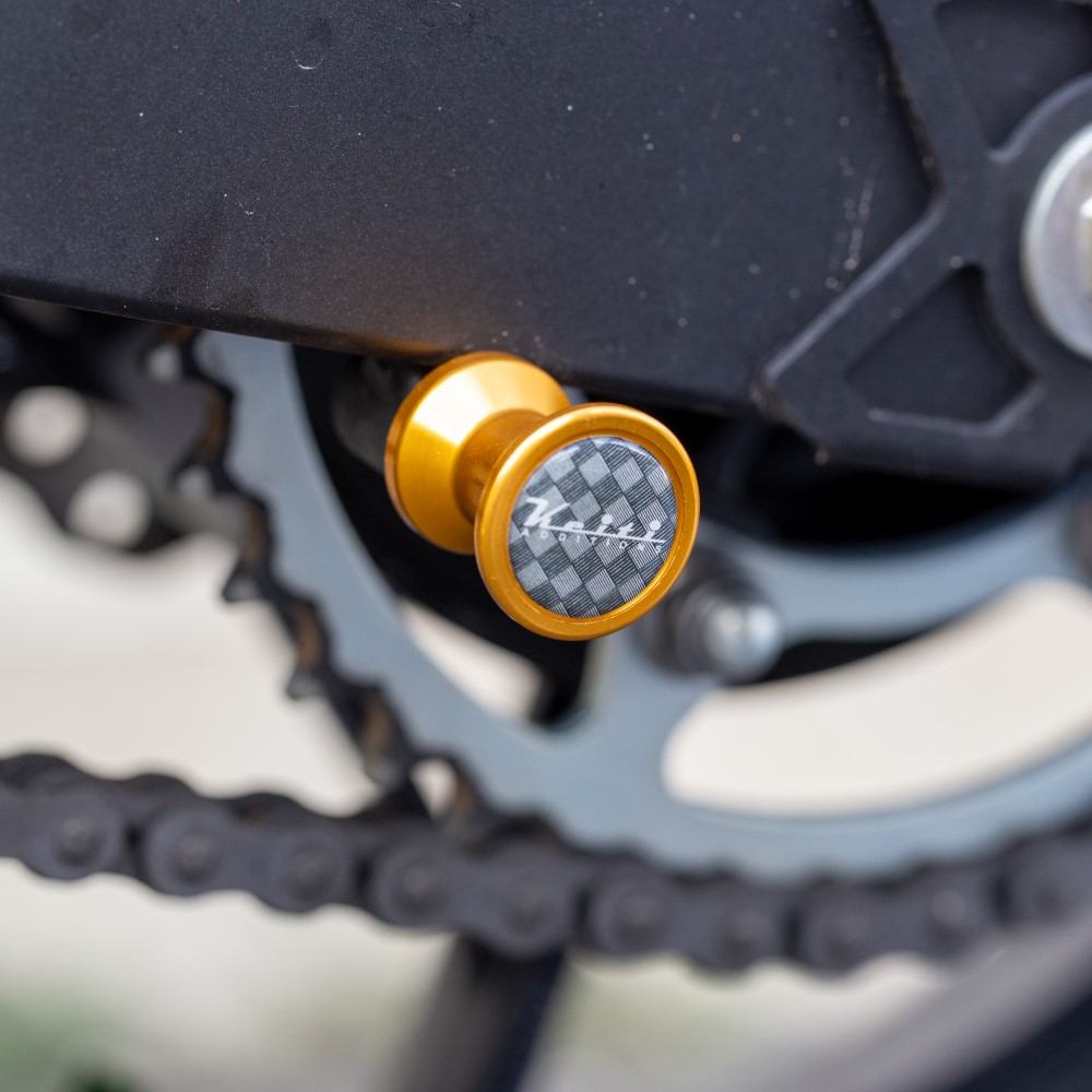 Fitted to the swing arm to enable mounting of a rear stand. Provide gripping points when maneuvering the motorcycle.